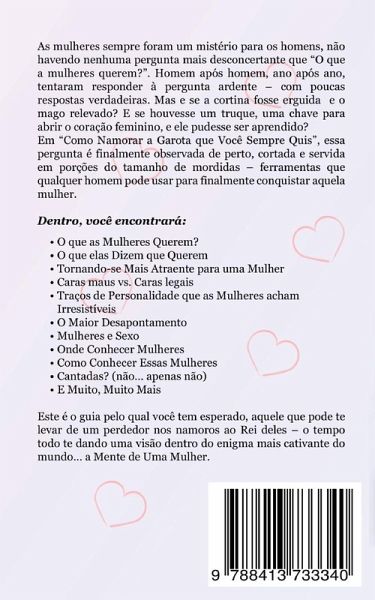 As mulheres sempre foram um mistério para os homens, não havendo nenhuma pergunta mais desconcertante que "O que a mulheres querem?". Homem após homem, ano após ano, tentaram responder à pergunta ardente - com poucas respostas verdadeiras. Mas e se a cortina fosse erguida e o mago relevado? E se houvesse um truque, uma chave para abrir o coração feminino, e ele pudesse ser aprendido? Em "Como Namorar a Garota que Você Sempre Quis", essa pergunta é finalmente observada de perto, cortada e servida em porções do tamanho de mordidas - ferramentas que qualquer homem pode usar para finalmente conquistar aquela mulher. Dentro, você encontrará: * O que as Mulheres Querem? * O que elas Dizem que Querem * Tornando-se Mais Atraente para uma Mulher * Caras maus vs. Caras legais * Traços de Personalidade que as Mulheres acham Irresistíveis * O Maior Desapontamento * Mulheres e Sexo * Onde Conhecer Mulheres * Como Conhecer Essas Mulheres * Cantadas? (não... apenas não) * E Muito, Muito Mais Este é o guia pelo qual você tem esperado, aquele que pode te levar de um perdedor nos namoros ao Rei deles - o tempo todo te dando uma visão dentro do enigma mais cativante do mundo... a Mente de Uma Mulher.