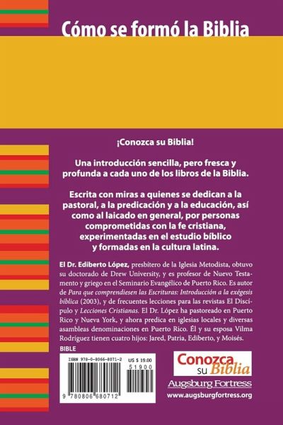 Conozca su Biblia, developed in partnership with the Asocación para la Educación Teológica Hispana and the Division for Congregational Ministries of the ELCA, is a unique new Bible series written in Spanish by leading Hispanic theologians and Bible educators. The series includes general volumes about the Bible, as well as volumes about specific books or groups of related books. Written by knowledgeable scholars who avoid using unnecessary technical terms or an abundance of footnotes. The books are written at a high school reading level and address lay adults and beginning students. Scripture texts are from the two most commonly used Bibles in the Spanish-speaking world: the Reina-Valera Revisada and the Version Popular (Good News).