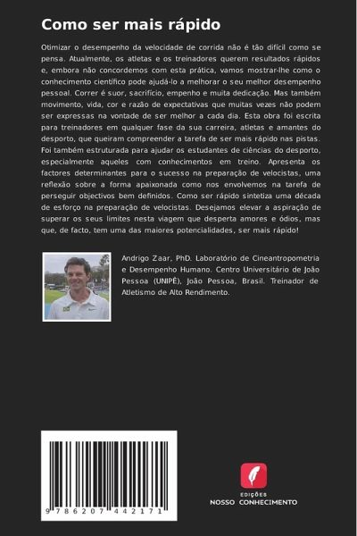 Otimizar o desempenho da velocidade de corrida não é tão difícil como se pensa. Atualmente, os atletas e os treinadores querem resultados rápidos e, embora não concordemos com esta prática, vamos mostrar-lhe como o conhecimento científico pode ajudá-lo a melhorar o seu melhor desempenho pessoal. Correr é suor, sacrifício, empenho e muita dedicação. Mas também movimento, vida, cor e razão de expectativas que muitas vezes não podem ser expressas na vontade de ser melhor a cada dia. Esta obra foi escrita para treinadores em qualquer fase da sua carreira, atletas e amantes do desporto, que queiram compreender a tarefa de ser mais rápido nas pistas. Foi também estruturada para ajudar os estudantes de ciências do desporto, especialmente aqueles com conhecimentos em treino. Apresenta os factores determinantes para o sucesso na preparação de velocistas, uma reflexão sobre a forma apaixonada como nos envolvemos na tarefa de perseguir objectivos bem definidos. Como ser rápido sintetiza uma década de esforço na preparação de velocistas. Desejamos elevar a aspiração de superar os seus limites nesta viagem que desperta amores e ódios, mas que, de facto, tem uma das maiores potencialidades, ser mais rápido!