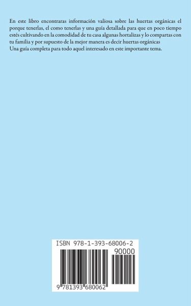En este libro encontraras información valiosa sobre las huertas orgánicas el porque tenerlas, el como tenerlas y una guía detallada para que en poco tiempo estés cultivando en la comodidad de tu casa algunas hortalizas y lo compartas con tu familia y por supuesto de la mejor manera es decir huertas orgánicas Una guía completa para todo aquel interesado en este importante tema.