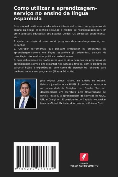 Este manual destina-se a educadores interessados em criar programas de ensino da língua espanhola segundo o modelo de "aprendizagem-serviço" em instituições educativas dos Estados Unidos. Os objectivos deste manual são:1. ajudar na criação do seu próprio programa de aprendizagem-serviço em espanhol.2. Oferecer ferramentas que possam enriquecer os programas de aprendizagem-serviço em língua espanhola já existentes, através da compilação das melhores práticas neste domínio.3. ligar virtualmente os professores que estão a desenvolver programas de aprendizagem-serviço em espanhol nos Estados Unidos, com o objetivo de partilhar lições e experiências, bem como de expandir os recursos para melhorar os nossos programas (Alianza Eduación).