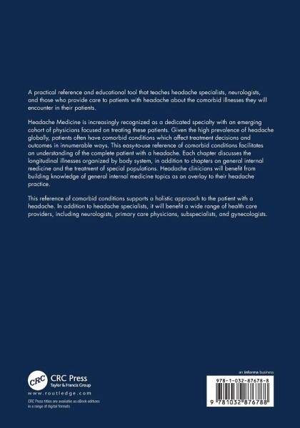 A concise reference and educational tool to teach headache specialists and neurologists about the comorbid illnesses they will encounter in their patients. In addition to headache specialists, it will benefit a wide range of health care providers, including primary care physicians, subspecialists, and gynecologists.