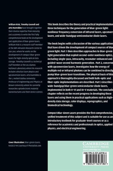 William Risk, Timothy Gosnell and Arto Nurmikko have brought together their diverse expertise from industry and academia to write the first fully comprehensive book on the generation and application of blue-green lasers. This volume describes the theory and practical implementation of three techniques for the generation of blue-green light: nonlinear frequency conversion of infrared lasers, upconversion lasers, and wide bandgap semiconductor diode lasers. In addition, it looks at the various applications that have driven the development of compact sources of blue-green light, and reflects on the recent application of these lasers in high-density data storage, color displays, reprographics, and biomedical technology. Compact Blue-Green Lasers is suitable for graduate-level courses or as a reference for academics and professionals in optics, applied physics, and electrical engineering.