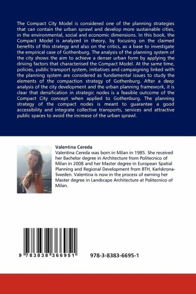 The Compact City Model is considered one of the planning strategies that can contain the urban sprawl and develop more sustainable cities, in the environmental, social and economic dimensions. In this book, the Compact Model is analyzed in theory, by focusing on the claimed benefits of this strategy and also on the critics, as a base to investigate the empirical case of Gothenburg. The analysis of the planning system of the city shows the aim to achieve a denser urban form by applying the driving factors that characterised the Compact Model. At the same time, policies, public transport system, initiatives and campaigning linked with the planning system are considered as fundamental issues to study the elements of the compaction strategy of Gothenburg. After a deep analysis of the city development and the urban planning framework, it is clear that densification in strategic nodes is a feasible outcome of the Compact City concept when applied to Gothenburg. The planning strategy ofthe compact nodes is meant to guarantee a good accessibility and integrate collective transports, services and attractive public spaces to avoid the increase of the urban sprawl.
