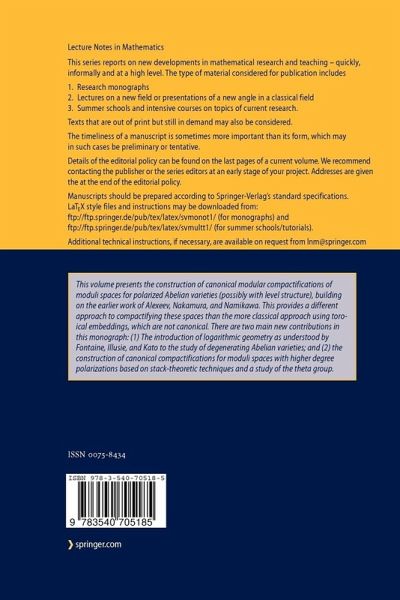 "No doubt, the work presented in this research monograph is a fundamental contribution to the compactification theory of moduli spaces in general, and of moduli spaces for abelian varieties in particular. ... the present monograph is written in a very lucid, comprehensive, largely self-contained and enlightening style, including numerous additional remarks and hints." (Werner Kleinert, Zentralblatt MATH, Vol. 1165, 2009)