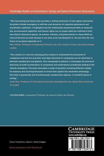 This book can help students, scholars and practitioners identify the overlaps and tensions between company and environmental law. Connecting diverse areas such as international environmental law, climate and energy law, human rights law, and investor action, Benjamin argues that company law can be a bridge to corporate climate action.