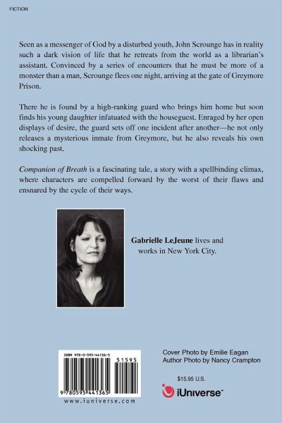 Seen as a messenger of God by a disturbed youth, John Scrounge has in reality such a dark vision of life that he retreats from the world as a librarian's assistant. Convinced by a series of encounters that he must be more of a monster than a man, Scrounge flees one night, arriving at the gate of Greymore Prison. There he is found by a high-ranking guard who brings him home but soon finds his young daughter infatuated with the houseguest. Enraged by her open displays of desire, the guard sets off one incident after another-he not only releases a mysterious inmate from Greymore, but also reveals his own shocking past. Companion of Breath is a fascinating tale, a story with a spellbinding climax, where characters are compelled forward by the worst of their flaws and ensnared by the cycle of their ways.