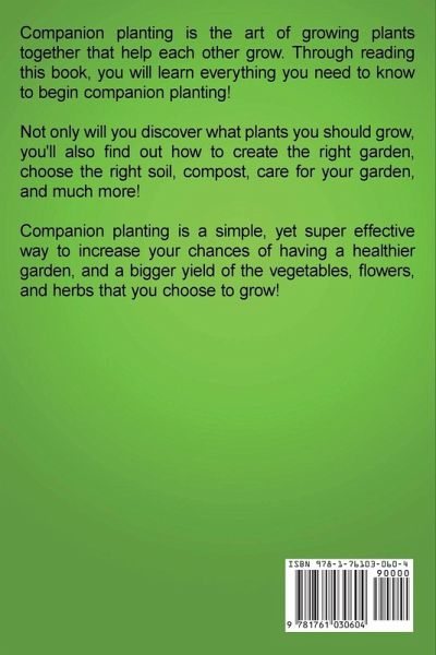COMPANION PLANTING Companion planting is the art of growing plants together that help each other grow. Through reading this book, you will learn everything you need to know to begin companion planting! Not only will you discover what plants you should grow, you'll also find out how to create the right garden, choose the right soil, compost, care for your garden, and much more! Companion planting is a simple, yet super effective way to increase your chances of having a healthier garden, and a bigger yield of the vegetables, flowers, and herbs that you choose to grow! Here Is What You'll Learn About... Companion planting basics Advantages and disadvantages The importance of soil How to design your garden How to care for your garden What plants to grow together What plants to avoid Much, much more!