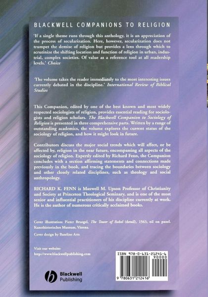 List of contributors viii Acknowledgments xii Preface xiv Part I Classical and Contemporary Theory: Recycling, Continuity, Progress, or New Departures? Editorial Commentary: Religion and the Secular; the Sacred and the Profane: The Scope of the Argument 3 1 Personal Reflections in the Mirror of Halévy and Weber 23 David Martin 2 Salvation, Secularization, and De-moralization 39 Bryan Wilson 3 The Pentecostal Gender Paradox: A Cautionary Tale for the Sociology of Religion 52 Bernice Martin 4 Feminism and the Sociology of Religion: From Gender-blindness to Gendered Difference 67 Linda Woodhead 5 Melancholia, Utopia, and the Psychoanalysis of Dreams 85 Donald Capps 6 Georg Simmel: American Sociology Chooses the Stone the Builders Refused 105 Victoria Lee Erickson 7 Transformations of Society and the Sacred in Durkheim's Religious Sociology 120 Donald A. Nielsen 8 Classics in the Sociology of Religion: An Ambiguous Legacy 133 Roger O'Toole 9 Individualism, the Validation of Faith, and the Social Nature of Religion in Modernity 161 Danièle Hervieu-Léger 10 The Origins of Religion 176 Richard K. Fenn Part II Contemporary Trends in the Relation of Religion to Society Editorial Commentary: Whose Problem is it? The Question of Prediction versus Projection 197 11 Secularization Extended: From Religious "Myth" to Cultural Commonplace 211 Nicholas J. Demerath III 12 Social Movements as Free-floating Religious Phenomena 229 James A. Beckford 13 The Social Process of Secularization 249 Steve Bruce 14 Patterns of Religion in Western Europe: An Exceptional Case 264 Grace Davie 15 The Future of Religious Participation and Belief in Britain and Beyond 279 Robin Gill 16 Religion as Diffusion of Values. "Diffused Religion" in the Context of a Dominant Religious Institution: The Italian Case 292 Roberto Cipriani 17 Spirituality and Spiritual Practice 306 Robert Wuthnow 18 The Renaissance of Community Economic Development among African-American Churches in the 1990s 321 Katherine Day 19 Hell as a Residual Category: Possibilities Excluded from the Social System 336 Richard K. Fenn and Marianne Delaporte Part III The Sociology of Religion and Related Areas of Inquiry Editorial Commentary: Looking for the Boundaries of the Field: Social Anthropology, Theology, and Ethnography 363 20 Acting Ritually: Evidence from the Social Life of Chinese Rites 371 Catherine Bell 21 Moralizing Sermons, Then and Now 388 Thomas Luckmann 22 Health, Morality and Sacrifice: The Sociology of Disasters 404 Douglas J. Davies 23 Contemporary Social Theory as it Applies to the Understanding of Religion in Cross-cultural Perspective 418 Peter Beyer 24 The Return of Theology: Sociology's Distant Relative 432 Kieran Flanagan 25 Epilogue: Toward a Secular View of the Individual 445 Richard K. Fenn Index 469