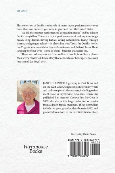This collection of family stories tells of many repeat performances--over more than one hundred years and in places all over the United States. We call these repeat performances "companion stories" told by a dozen family storytellers. There are repeat performances of such family experiences as making sourdough bread, icing drinks, having babies, eating watermelon, living through storms, and going to school--in places like west Texas, the Ozarks, northern Virginia, southern Idaho, Batesville, Arkansas and Bullard, Texas. These landscapes of our lives--some of them-become characters too.These are ordinary stories, from ordinary people, in ordinary places. Most every reader will find a story that echoes his or her experiences with just a small (or large) twist.