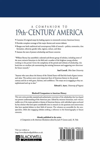 A Companion to 19th-Century America presents the most up-to-date interpretations of the wide range of historical experience in nineteenth-century America. Twenty-seven scholars - all specialists in their own thematic areas - demonstrate how nineteenth-century American historiography has evolved, summarize current historical research, and assess the future direction of scholarship. Coverage of topics encompasses not only the traditional areas of political, economic, and diplomatic history but also more recent fields of academic enquiry such as the social construction of race, ethnicity, gender, class formations, and cultural identities. Intended for scholars, students, and general readers of modern American history, this volume stands alone in providing a historiographical overview of nineteenth-century America that is both complete in its coverage and cutting-edge in its interpretations. Each chapter includes a select bibliography which serves as a convenient reference to additional reading.