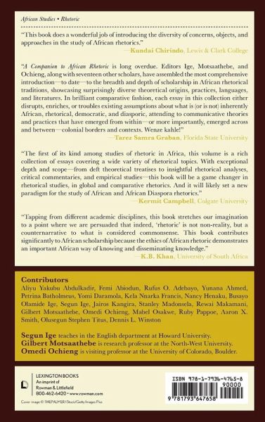 A Companion to African Rhetoric argues for a holistic view of rhetoric on the continent, gives an outline of what African rhetoric is, and serves as a pivotal anthology with contributions from African, Afro-Caribbean and African American rhetoricians to understanding African rhetoric.