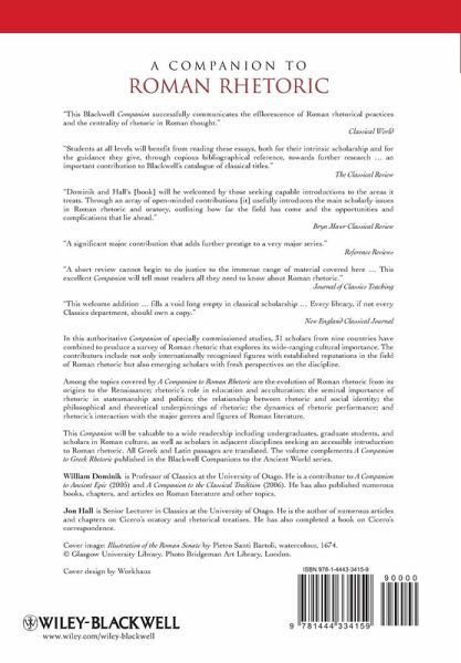 William Dominik is Professor of Classics at the University of Otago. He is a contributor to A Companion to Ancient Epic (2005) and A Companion to the Classical Tradition (2006). He has also published numerous books, chapters, and articles on Roman literature and other topics. Jon Hall is Senior Lecturer in Classics at the University of Otago. He is the author of numerous articles and chapters on Cicero's oratory and rhetorical treatises. He has also completed a book on Cicero's correspondence.