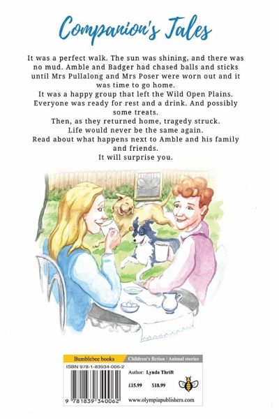 It was a perfect walk. The sun was shining, and there was no mud. Amble and Badger had chased balls and sticks until Mrs Pullalong and Mrs Poser were worn out and it was time to go home. It was a happy group that left the Wild Open Plains. Everyone was ready for rest and a drink. And possibly some treats. Then, as they returned home, tragedy struck. Life would never be the same again. Read about what happens next to Amble and his family and friends. It will surprise you.