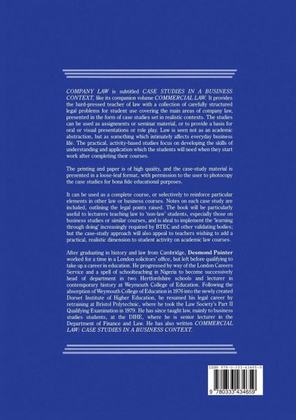 A set of twenty problems in company law. The loose-leaf case study pages are licensed for bona fide lecturers to photocopy for assignment and seminar use. Full lecturers notes are provided showing how the cases can be fully updated in practical, activity-based study.