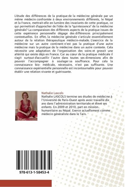 L'étude des différences de la pratique de la médecine générale par un même médecin confrontée à deux environnements différents, le Népal et la France, mettrait-elle en lumière des invariants de cette pratique, ce qui permettrait d'approcher de l'idée de la "quintessence" de la médecine générale? La comparaison des différents aspects de la pratique issues de cette expérience personnelle dégage des différences principalement contextuelles. En effet, la médecine générale s'articule essentiellement autour de la relation thérapeutique médecin-malade. L'exercice de la médecine sur un autre continent n'est pas la pratique d'une autre médecine mais la pratique de la médecine dans un autre contexte. Cela nécessite une adaptation de l'organisation des soins et grossit une altérité qui existe déjà en France. Car au coeur de la pratique médicale il s'agit surtout d'accueillir l'autre dans toutes ses dimensions afin de pouvoir l'accompagner à soulager sa souffrance. Pour cela la connaissance bio- médicale, nécessaire, n'est pas suffisante. Une connaissance expérientielle personnelle est incontournable pour pouvoir établir une relation vivante et guérissante.