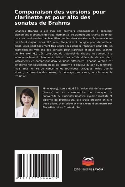 Johannes Brahms a été l'un des premiers compositeurs à apprécier pleinement le potentiel de l'alto, donnant à l'instrument une chance de briller dans sa musique de chambre. Bien que les deux sonates en fa mineur et en mi bémol majeur, opus 120, aient été écrites à l'origine pour clarinette et piano, elles sont également très appréciées dans le répertoire pour alto. En examinant les versions des sonates pour clarinette et pour alto, Brahms semble avoir été très conscient du potentiel de chaque instrument. Il a intentionnellement cherché à obtenir des effets différents de ces deux instruments en composant deux versions différentes. Chaque version est différente non seulement en ce qui concerne la couleur du son ou le timbre, mais aussi en ce qui concerne les techniques pratiques, telles que le vibrato, la pression des lèvres, le décalage des sauts, le volume et la tessiture.