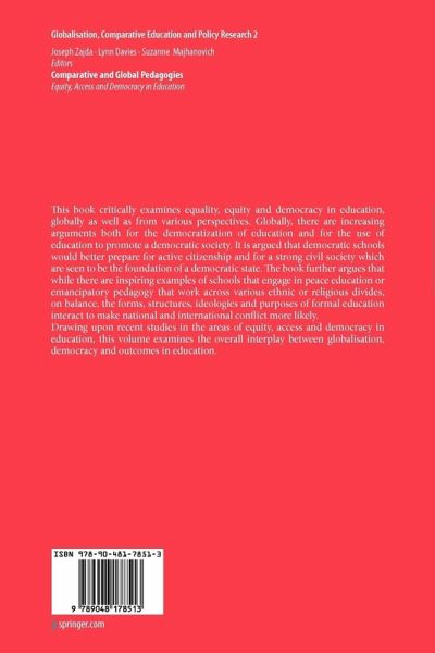 A major aim of Comparative and Global Pedagogies: Equity, Access and Democracy in Education which is the second volume in the 12-volume book series Globalisation, Comparative Education and Policy Research, edited by Joseph Zajda and his team, is to present a global overview of recent trends in equity and access in education globally. By examining some of the major education policy issues, particularly in the light of recent shifts in education and policy research dealing with equity and access, the editors aim to provide a comprehensive picture of the intersecting and diverse discourses of globalization, education and policy-driven reforms. The impact of globalization on education policy and reforms is a strategically important issue for us all. More than ever before, there is a need to understand and analyse both the intended and the unintended effects of globalization on edu- tional systems, the state, and relevant policy changes - especially in terms of equity and access, as they affect individuals, educational bodies (such as universities), policy-makers across the globe. Current education policy research dealing with equity and social inequality reflects a rapidly changing world where citizens and consumers are experiencing a growing sense of uncertainty, exclusion and loss of flexibility. Yet globalization exposes us also to opportunities generated by a fast changing world economy.