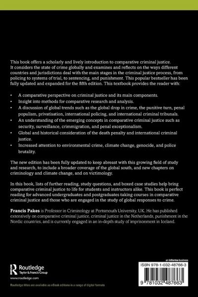A comparative perspective on criminal justice and its main componentsInsight into methods for comparative research and analysisA discussion of global trends such as the global drop in crime, the punitive turn, penal populism, privatisation, international policing, and international criminal tribunalsAn understanding of the emerging concepts in comparative criminal justice such as security, surveillance, crimmigration, and penal exceptionalismGlobal and historical consideration of the death penalty and international criminal justiceIncreased attention to environmental crime, climate change, genocide, and police brutality