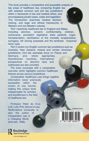 This book provides a comparative and accessible analysis of key areas of healthcare law, comparing English law with selected common and civil law jurisdictions within a framework of law and medical ethics, and encompassing pivotal cases, codes and legislation.