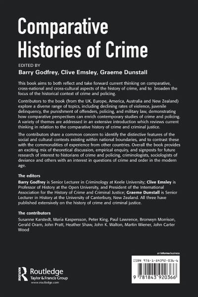 This book aims to both reflect and take forward current thinking on comparative and cross-national and cross-cultural aspects of the history of crime.