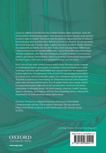Courts in different jurisdictions face similar human rights questions. Does the death penalty breach human rights? Does freedom of speech include racist speech? Is there a right to health? This book uses the prism of comparative law to examine the fascinating ways in which these difficult questions are decided. On the one hand, the shared language of human rights suggests that there should be similar solutions to comparable problems. On the other hand, there are important differences. Constitutional texts are worded differently; courts have differing relationships with the legislature; and there are divergences in socio-economic development, politics, and history. Nevertheless, there is a growing transnational conversation between courts, with cases in one jurisdiction being cited in others. Part I sets out the cross-cutting themes which shape the ways judges respond to challenging human rights issues. It examines when it is legitimate to refer to foreign materials; how universality and cultural relativity are balanced in human rights law; the appropriate role of courts in adjudicating human rights in a democracy; and the principles judges use to interpret human rights texts. The book is unusual in transcending the distinction between socio-economic rights and civil and political rights. Part II applies these cross-cutting themes to comparing human rights law in the US, UK, South Africa, Canada, and India. Its focus is on seven particularly challenging issues: the death penalty, abortion, housing, health, speech, education and religion, with the aim of inspiring further comparative examination of other pressing human rights issues.