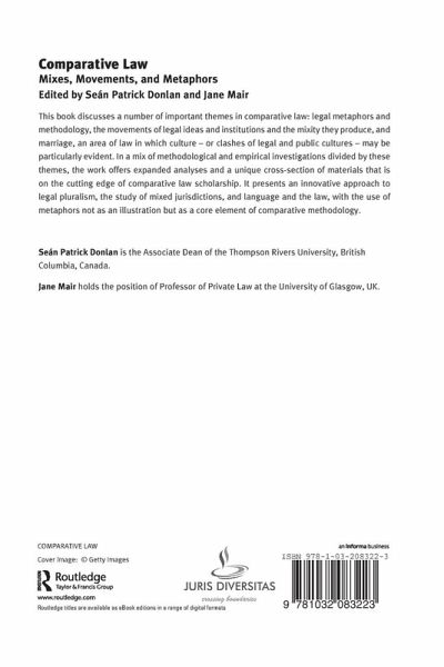This book discusses a number of important themes in comparative law: legal metaphors and methodology, the movements of legal ideas and institutions and the mixity they produce, and marriage, an area of law in which culture - or clashes of legal and public cultures - may be particularly evident. In a mix of methodological and empirical investigations divided by these themes, the work offers expanded analyses and a unique cross-section of materials that is on the cutting edge of comparative law scholarship. It presents an innovative approach to legal pluralism,¿the¿study of mixed jurisdictions, and language and the law, with the use of metaphors not as an illustration but as a core element of comparative methodology.