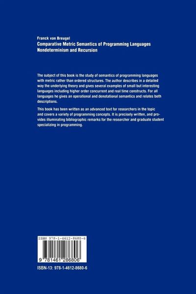 During the last three decades several different styles of semantics for program ming languages have been developed. This book compares two of them: the operational and the denotational approach. On the basis of several exam ples we show how to define operational and denotational semantic models for programming languages. Furthermore, we introduce a general technique for comparing various semantic models for a given language. We focus on different degrees of nondeterminism in programming lan guages. Nondeterminism arises naturally in concurrent languages. It is also an important concept in specification languages. In the examples discussed, the degree of non determinism ranges from a choice between two alternatives to a choice between a collection of alternatives indexed by a closed interval of the real numbers. The former arises in a language with nondeterministic choices. A real time language with dense choices gives rise to the latter. We also consider the nondeterministic random assignment and parallel composition, both couched in a simple language. Besides non determinism our four example languages contain some form of recursion, a key ingredient of programming languages.