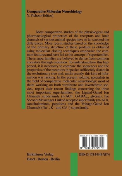 It is generally accepted that all living organisms present on earth derive from one single primordial cell born several billion years ago. One important step in the evolution occurred some 1. 5 billion years ago with the transition from small procaryote cells with relatively simple internal structures such as bacteria to larger and more compleX: eucaryotic cells such as those found in higher animals and plants. Large membrane proteins which enable the cells to communicate appeared early in evolution, and it is believed that the nerve membrane receptors and ionic channels which are observed today in both invertebrate and vertebrate species derive from a common ancestor. Basically, the three identified superfamilies, 1) ionotropic receptors (i. e. receptors containing an integral ionic channel), 2) metabotropic receptors (receptors coupled to G proteins) and 3) voltage-dependent ionic channels (Na+, K + and Ca2+ channels) were already well differentiated when vertebrates separated from invertebrate species. The large number of subtypes which are observed in each superfamily may be of more recent evolutionary origin. To understand how this happened, the best approach was to compare the sequences and the properties of the receptors and ionic channels in species sufficiently distant in the evolutionary tree. In the present volume, many of the best specialists in the field of comparative molecular neurobiology, several of them working on vertebrate and invertebrate species, have accepted to report their most recent findings.