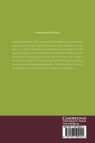 Originally published in 1927 as part of the Cambridge Comparative Physiology series, this book examines the composition and function of the heart in a range of animals, both vertebrates and invertebrates. Clark examines subjects such as how the function of the heart differs between members of the same species who are not of the same size, as well as the nervous control of the heart and the differences in heart structure between cold- and warm-blooded animals. This book will be of value to anyone with an interest in the history of science or cardiology.