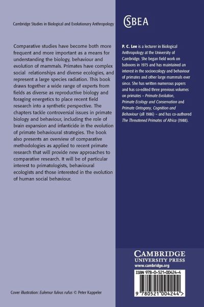 P. C. Lee is a lecturer in Biological Anthropology at the University of Cambridge. She began field work on baboons in 1975 and has maintained an interest in the socioecology and behaviour of primates and other large mammals ever since. She has written numerous papers and has co-edited three previous volumes on primates: Primate Evolution, Primate Ecology and Conservation and Primate Ontogeny, Cognition and Behaviour (all 1986) and co-authored The Threatened Primates of Africa.