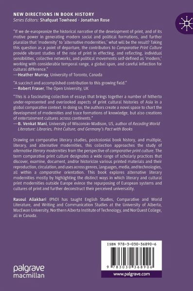 Drawing on comparative literary studies, postcolonial book history, and multiple, literary, and alternative modernities, this collection approaches the study of alternative literary modernities from the perspective ofcomparative print culture. The term comparative print culture designates a wide range of scholarly practices that discover, examine, document, and/or historicize various printed materials and their reproduction, circulation, and uses across genres, languages, media, and technologies, all within a comparative orientation. This book explores alternative literary modernities mostly by highlighting the distinct ways in which literary and cultural print modernities outside Europe evince the repurposing of European systems and cultures of print and further deconstruct their perceived universality.