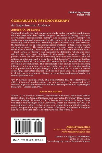 This book details the first comparative study under controlled conditions of the three major schools of psychotherapy-client-centered therapy, behavioral or systematic desensitization therapy, and rational-emotive therapy. The study was organized to compare the effectiveness of these distinct forms of counseling with two distinct personality types-introverts and extroverts-in the treatment of two specific homogeneous problems-interpersonal anxiety and general anxiety. The study was reviewed by experts representing each of the schools of thought, and critiques are included as part of the total book. Each school of therapy was evaluated to determine which was most effective with what type of subject. In this study, client-centered therapy proved to have the best results in reducing anxiety with extroverts, while the rational-emotive approach worked best with introverts. The therapy that had the greatest breadth, in terms of effectiveness for both kinds of clients, was systematic desensitization. This remarkable study should have far-reaching influence in the practical use of psychotherapy, and is essential reading for all professionals and psychology students who plan to enter the area of counseling. Instructors can use this book as a basic text or as a supplement to all introductory courses in clinical or counseling psychology offered at the senior/graduate level.