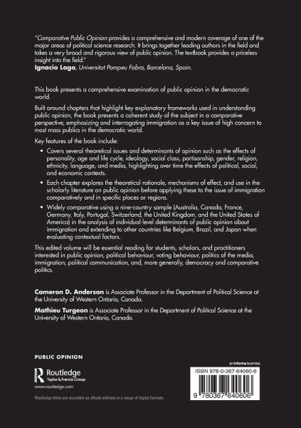 Built around chapters that highlight key explanatory frameworks used in understanding public opinion, the book presents a coherent study of the subject in a comparative perspective, emphasizing and interrogating immigration as a key issue of high concern to most mass publics in the democratic world.