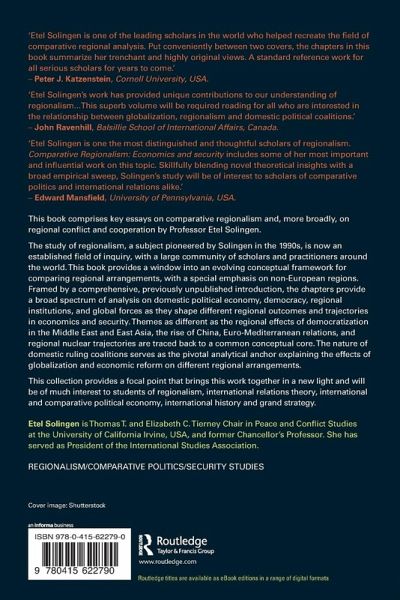 This book comprises key essays on comparative regionalism and, more broadly, on regional conflict and cooperation by Professor Etel Solingen. The study of regionalism, a subject pioneered by Solingen in the 1990s, is now an established field of inquiry, with a large community of scholars and practitioners around the world. This book provides a window into an evolving conceptual framework for comparing regional arrangements, with a special emphasis on non-European regions. Framed by a comprehensive, previously unpublished introduction, the chapters provide a broad spectrum of analysis on domestic political economy, democracy, regional institutions, and global forces as they shape different regional outcomes and trajectories in economics and security. Themes as different as the regional effects of democratization in the Middle East and East Asia, the rise of China, Euro-Mediterranean relations, and regional nuclear trajectories are traced back to a common analytical core. The nature of domestic ruling coalitions serves as the pivotal analytical anchor explaining the effects of globalization and economic reform on different regional arrangements. This collection provides a focal point that brings this work together in a new light and will be of much interest to students of regionalism, international relations theory, international and comparative political economy, international history and grand strategy.