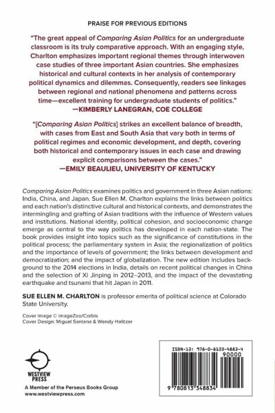 Comparing Asian Politics presents an invaluable comparative examination of politics and government in three Asian nations: India, China, and Japan. The author elucidates the links between politics and each nation's distinctive cultural and historical contexts and demonstrates the intermingling and grafting of Asian traditions with the influence of Western values and institutions. National identity, political cohesion, and socioeconomic change emerge as central to how politics has developed in each nation-state. Also included are focus boxes on political and social issues in other important countries in Asia. The book provides insight into topics such as the significance of constitutions in the political process; the parliamentary system in Asia; the regionalization of politics and the importance of levels of government; the decay of one-party rule; the links between development and democratization; and the impact of globalization. This essential text not only illuminates the politics of India, China, and Japan in relation to one another, it also suggests to readers how their own experience of politics can be informed by understanding the politics and government of these three Asian nations. In this new edition, the author includes a discussion on the recent political changes in China and the election of Xi Jinping in early 2013, the devastating earthquake and tsunami that hit Japan in 2011, and the recent elections in India.