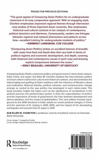 Chapter 1 Introduction: Themes in Asian Politics Chapter 2 India: People and Politics Chapter 3 Indian National Identity Chapter 4 China: People and Politics Chapter 5 Recreating the Chinese Nation-State Chapter 6 Japan: People and Politics Chapter 7 Japan: Tension in Tradition Chapter 8 Constitutions Chapter 9 The Parliamentary System in India and Japan Chapter 10 China: The Party-State System Chapter 11 Elusive Democracy: The Decay of One-Party Rule Chapter 12 Levels of Government and Regionalism Chapter 13 Development, Democratization, and Governance in Asia Chapter 14 Asian Politics and Global Transformation