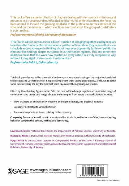 New chapters on authoritarian elections and regime change, and electoral integrity A chapter dedicated to voting behaviour Increased emphasis on issues relating to the economy. Comparing Democracies, Fourth Edition will remain a must-read for students and lecturers of elections and voting behaviour, comparative politics, parties, and democracy.