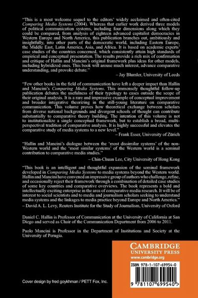"This is a most welcome sequel to the editors' widely acclaimed and often cited Comparing Media Systems (2004). Whereas that earlier work derived three models of political communication systems, including four dimensions along which they could be compared, from analysis of 18 advanced capitalist democracies in Western Europe and North America, this publication branches out, ambitiously and insightfully, into other parts of the democratic world, including Eastern Europe, the Middle East, Latin, America, Asia and Africa. It is based on academic experts' case studies of the countries concerned, which consistently attain high standards of empirical and conceptual presentation. The results provide a rich mix of confirmation and critique of Hallin and Mancini's original framework plus ideas for other models, including hybridized ones. This book will arouse much interest, advance comparative understanding, and provoke debate."-Jay Blumler, University of Leeds