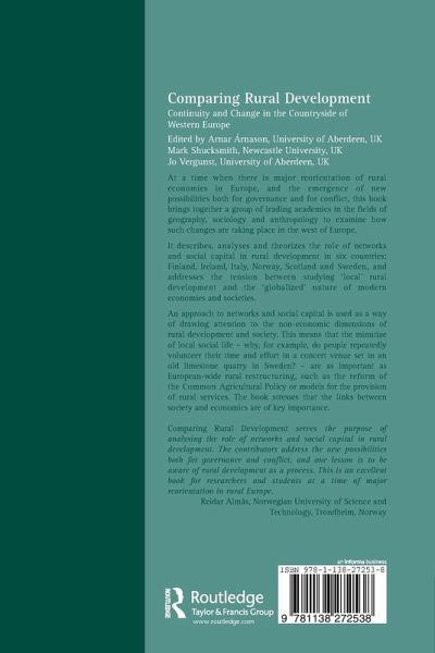 Contents: Preface; Introduction Arnar Ã?rnaason Andrea Nightingale Mark Shucksmith and Jo Vergunst; Networks for local development: aiming for visibility products and success Esko Lehto and Jukka Oksa; Social capital in rural areas: public goods and public services Claudio Cecchi; Gendered social capital : exploring the relations between civil society and the labour market Susanne Stenbacka and Karin Tillberg Mattsson; Identity-building in regional initiatives for rural development: comparing Ireland's lake district and Norway's mountain region Torill Meistad Frances Hannon and Chris Curtin; The role of identity in contemporary rural development processes Frances Hannon and Chris Curtin; Using environmental resources: networks in food and landscape Jo Vergunst Arnar Ã?rnason Ronald Macintyre and Andrea Nightingale; Conclusions: comparing rural development Jo Vergunst and Mark Shucksmith; References; Index.