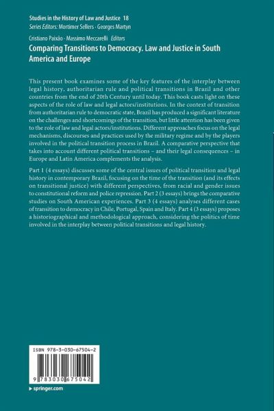 This present book examines some of the key features of the interplay between legal history, authoritarian rule and political transitions in Brazil and other countries from the end of 20th Century until today. This book casts light on these aspects of the role of law and legal actors/institutions. In the context of transition from authoritarian rule to democratic state, Brazil has produced a significant literature on the challenges and shortcomings of the transition, but little attention has been given to the role of law and legal actors/institutions. Different approaches focus on the legal mechanisms, discourses and practices used by the military regime and by the players involved in the political transition process in Brazil. A comparative perspective that takes into account different political transitions - and their legal consequences - in Europe and Latin America complements the analysis.