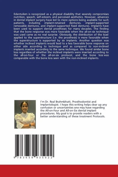 Edentulism is recognized as a physical disability that severely compromises nutrition, speech, self-esteem, and perceived aesthetics. However, advances in dental implant surgery have led to more options being available for such patients, including implant-retained dentures, implant-supported removable dentures, and implant-supported fixed dentures. Implants have been used to support dental prostheses for many decades. The finding that the bone response was more favorable when the all-on-six technique was used came as no real surprise. Obviously, the distribution of the load applied to the superstructure (i.e. the prosthesis) is more favorable when the superstructure is supported by six implants. Another question was whether inclined implants would lead to a less favorable bone response on either side according to technique and as compared to non-inclined implants inserted according to the same technique. We found similar bone loss regardless of whether the inclined implants were inserted according to the all-on-four or the all-on-six protocol, and the bone loss was comparable with the bone loss seen with the non-inclined implants.