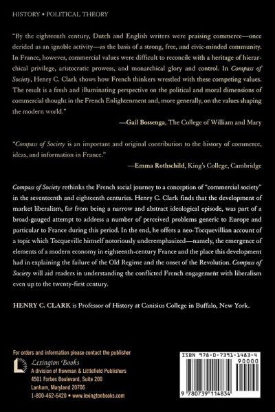 Compass of Society rethinks the French route to a conception of "commercial society" in the seventeenth and eighteenth centuries. Henry C. Clark finds that the development of market liberalism, far from being a narrow and abstract ideological episode, was part of a broad-gauged attempt to address a number of perceived problems generic to Europe and particular to France during this period.