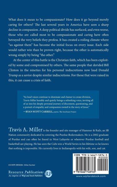 What does it mean to be compassionate? How does it go beyond merely caring for others? The last several years in America have seen a sharp decline in compassion. A deep political divide has surfaced, and even worse, those who are called most to be compassionate and caring have often betrayed the very beliefs they profess. It has created a roiling climate where ""us against them"" has become the initial focus on every issue. Each side would rather win than be proven right, because the other is automatically wrong simply by being ""the other."" At the center of this battle is the Christian faith, which has been exploited by some and compromised by others. The same people that derided Bill Clinton in the nineties for his personal indiscretions now laud Donald Trump as a savior despite similar indiscretions. For those that were raised in this, it can cause a crisis of faith.