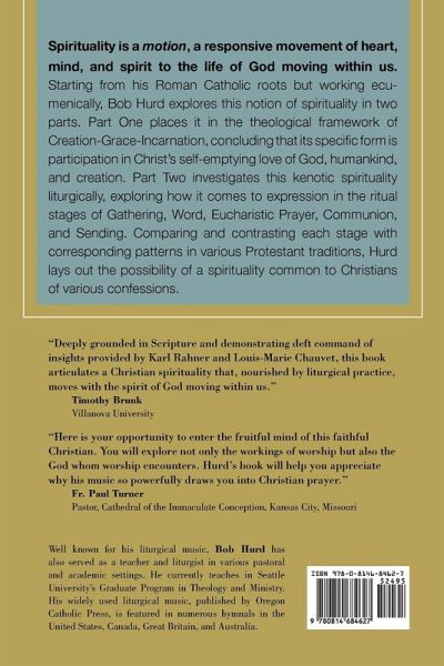 Spirituality is a motion, a responsive movement of heart, mind, and spirit to the life of God moving within us. Starting from his Roman Catholic roots but working ecumenically, Bob Hurd explores this notion of spirituality in two parts. Part 1 places it in the theological framework of Creation-Grace-Incarnation, concluding that its specific form is participation in Christ's self-emptying love of God, humankind, and creation. Part 2 investigates this kenotic spirituality liturgically, exploring how it comes to expression in the ritual stages of Gathering, Word, Eucharistic Prayer, Communion, and Sending. Comparing and contrasting each stage with corresponding patterns in various Protestant traditions, Hurd lays out the possibility of a spirituality common to Christians of various confessions.