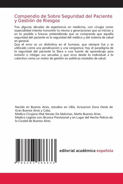 Tras algunas décadas de experiencia en medicina, con cirugía como especialidad intento transmitir la misma a generaciones que se inician y en lo posible a futuras pretendiendo que se comprenda que aquella seguridad del paciente es la seguridad del médico y del sistema de salud en general.Que el error es un distintivo en el humano, que siempre fue y es utilizado como una penalización y una vergüenza; hoy el paradigma de la seguridad del paciente lo lleva a una fuente de aprendizaje para evitarlo o mitigar sus secuelas y que sirva desde lo individual a lo colectivo como un motor de gestión en políticas estatales de salud.