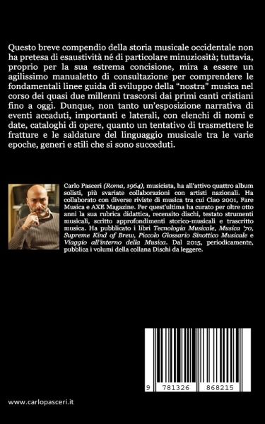 Questo breve compendio della storia musicale occidentale non ha pretesa di esaustività né di particolare minuziosità; tuttavia, proprio per la sua estrema concisione, mira a essere un agilissimo manualetto di consultazione per comprendere le fondamentali linee guida di sviluppo della "nostra" musica nel corso dei quasi due millenni trascorsi dai primi canti cristiani fino a oggi. Dunque, non tanto un'esposizione narrativa di eventi accaduti, importanti e laterali, con elenchi di nomi e date, cataloghi di opere, quanto un tentativo di trasmettere le fratture e le saldature del linguaggio musicale tra le varie epoche, generi e stili che si sono succeduti.