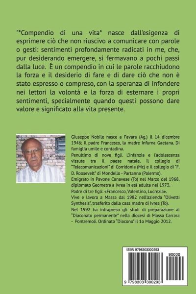 "*Compendio di una vita* nasce dall'esigenza di esprimere ciò che non riuscivo a comunicare con parole o gesti: sentimenti profondamente radicati in me, che, pur desiderando emergere, si fermavano a pochi passi dalla luce. È un compendio in cui le parole racchiudono la forza e il desiderio di fare e di dare ciò che non è stato espresso o compreso, con la speranza di infondere nei lettori la volontà e la forza di esternare i propri sentimenti, specialmente quando questi possono dare valore e significato alla vita presente. Questo progetto, frutto di una vita intera, mira a offrire al lettore una visione diversa della mia esistenza e, allo stesso tempo, della propria."