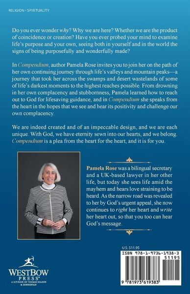 Do you ever wonder why? Why we are here? Whether we are the product of coincidence or creation? Have you ever probed your mind to examine lifes purpose and your own, seeing both in yourself and in the world the signs of being purposefully and wonderfully made? In Compendium, author Pamela Rose invites you to join her on the path of her own continuing journey through lifes valleys and mountain peaksa journey that took her across the swamps and desert wastelands of some of lifes darkest moments to the highest reaches possible. From drowning in her own complacency and stubbornness, Pamela learned how to reach out to God for lifesaving guidance, and in Compendium she speaks from the heart in the hopes that we see and hear its positivity and challenge our own complacency. We are indeed created and of an impeccable design, and we are each unique. With God, we have eternity sewn into our hearts, and we belong. Compendium is a plea from the heart for the heart, and it is for you.