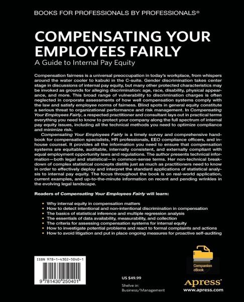Compensating Your Employees Fairly is a timely survey and comprehensive handbook for compensation specialists, HR professionals, EEO compliance officers, and in-house counsel. It provides all the information you need to ensure that compensation systems are equitable, auditable, internally consistent, and externally compliant with equal employment opportunity laws and regulations. The author presents technical information-both legal and statistical-in common-sense terms. Her non-technical breakdown of complex statistical concepts distills just as much as practitioners need to know in order to effectively deploy and interpret the standard applications of statistical analysis to internal pay equity. The focus throughout the book is on real-world application, current examples, and up-to-the-minute information on recent and pending wrinkles in the evolving legal landscape.